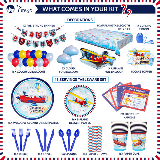 Pirese Airplane Birthday Decorations and Supplies Kit